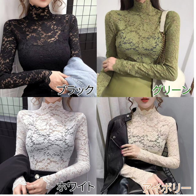 [fa-007] 花柄刺繍 |総レースインナー| ハイネック 長袖 インナー レディース 透け感 上品 S M L XL 2XL 「花柄レースが華やぐ、上品ハイネックインナー。」
