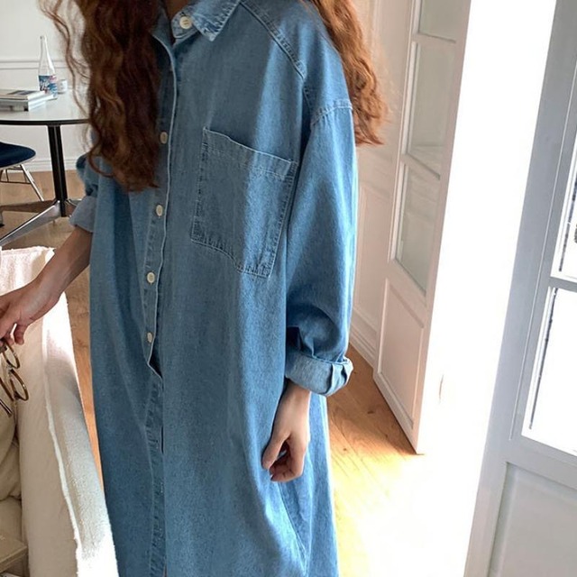 [fa-024] シャツワンピース デニムワンピース ロングワンピース レディース 長袖 ロング丈