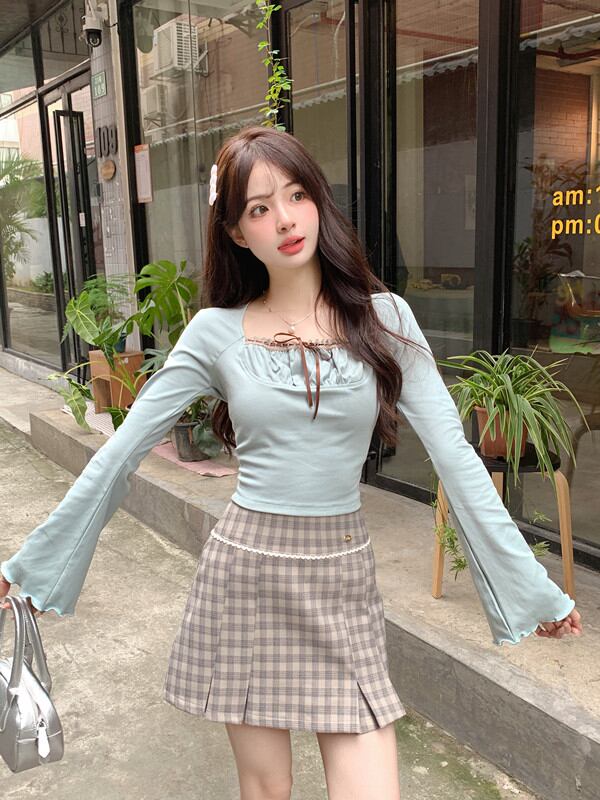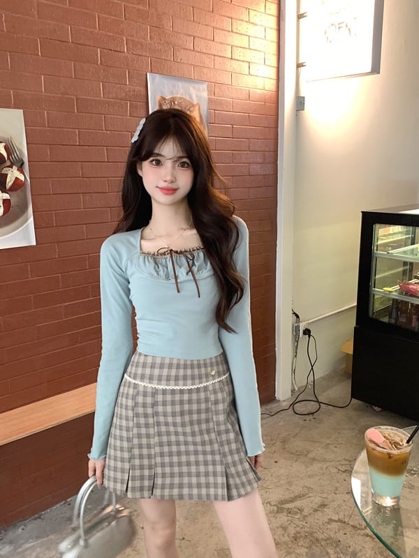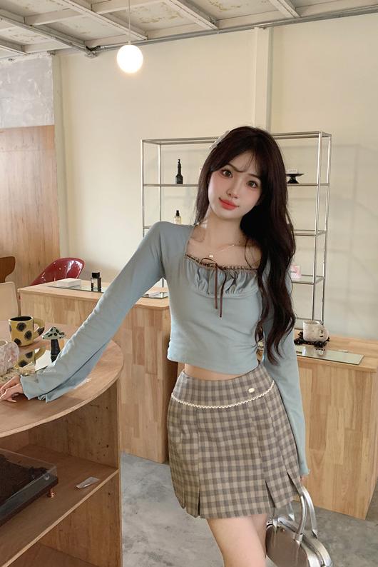 首元とボディラインをすっきり見せてくれるガーリーなトップスです。
