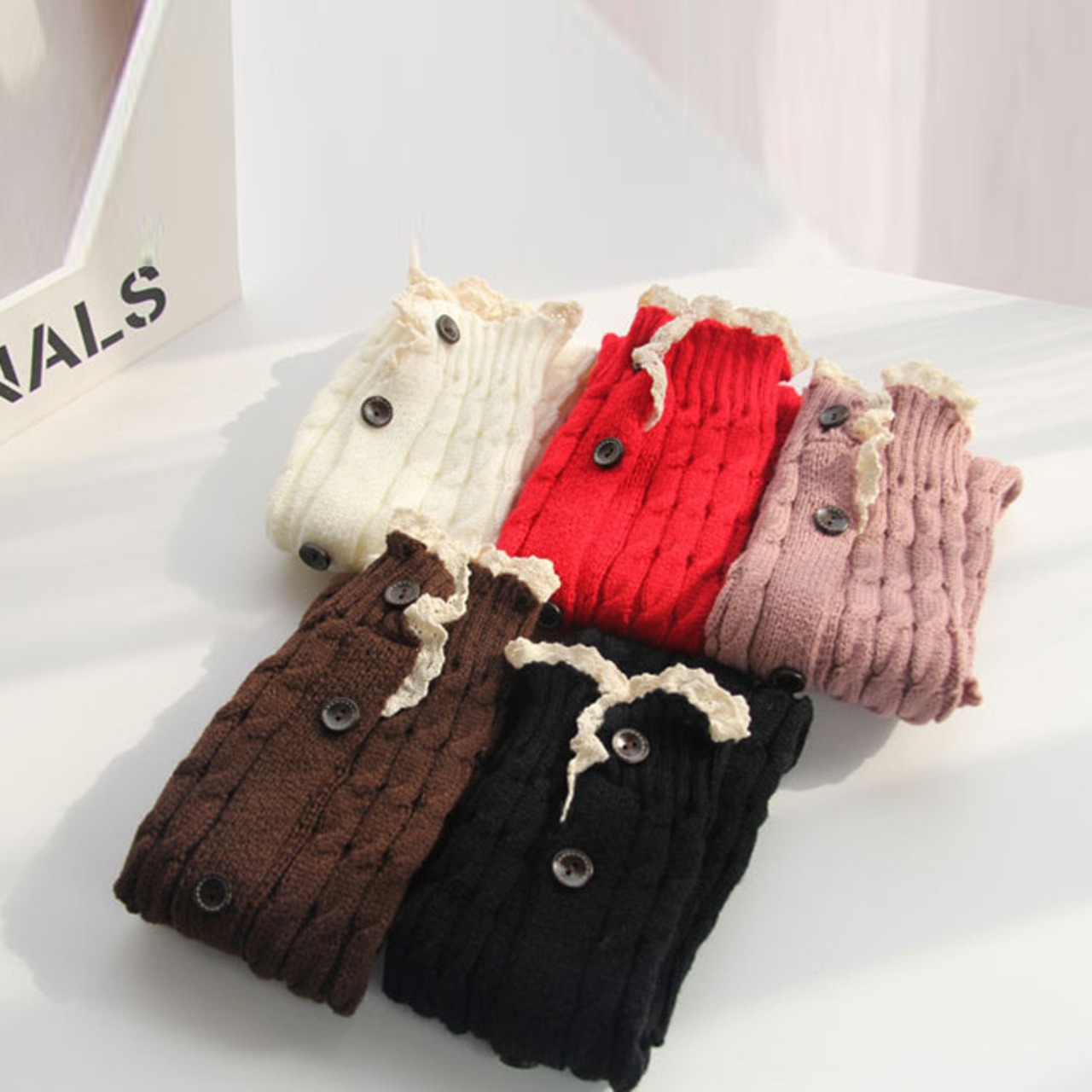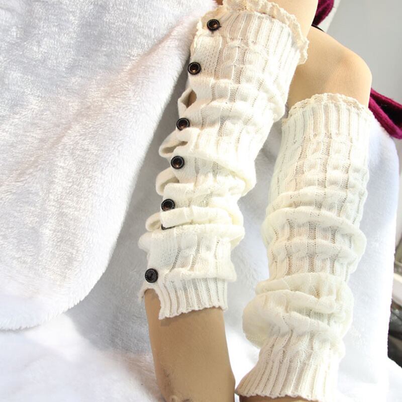 ボタンデザインにレースがおしゃれなレッグウォーマーです。