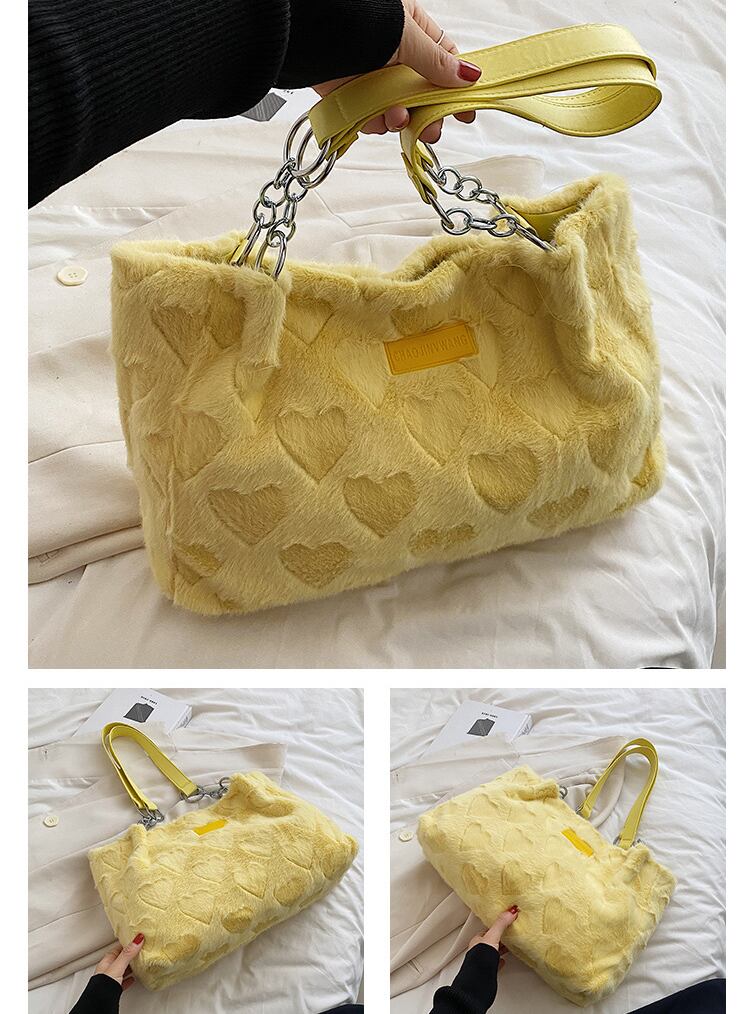 上品なハート柄が特徴のファーバッグです。