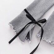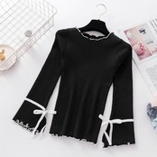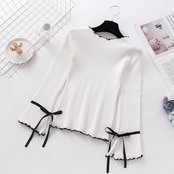 やさしい肌触りが心地よい、リボン付きフレアスリーブニット。