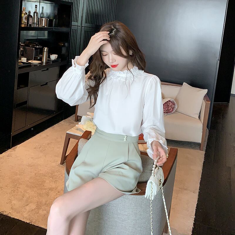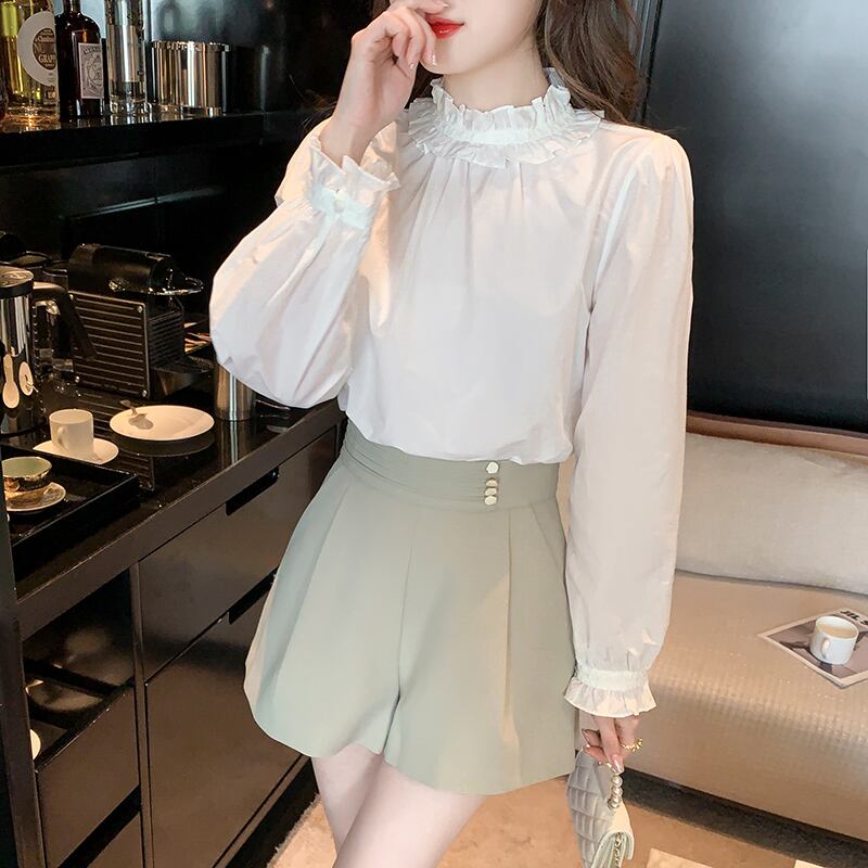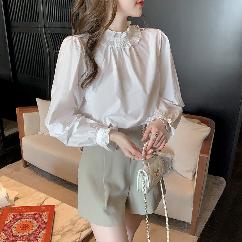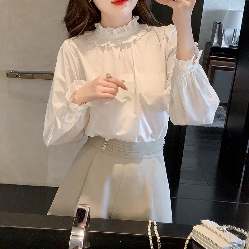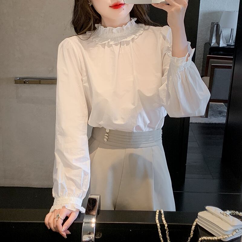レディース レースブラウス フリル 長袖 ショート丈 春服 フェミニンです!繊細なレースと可愛らしいフリルが施されたデザインで、春のコーディネートに上品さをプラスします。ショート丈のスタイルは合わせやすく、どんなボトムとも相性抜群です。